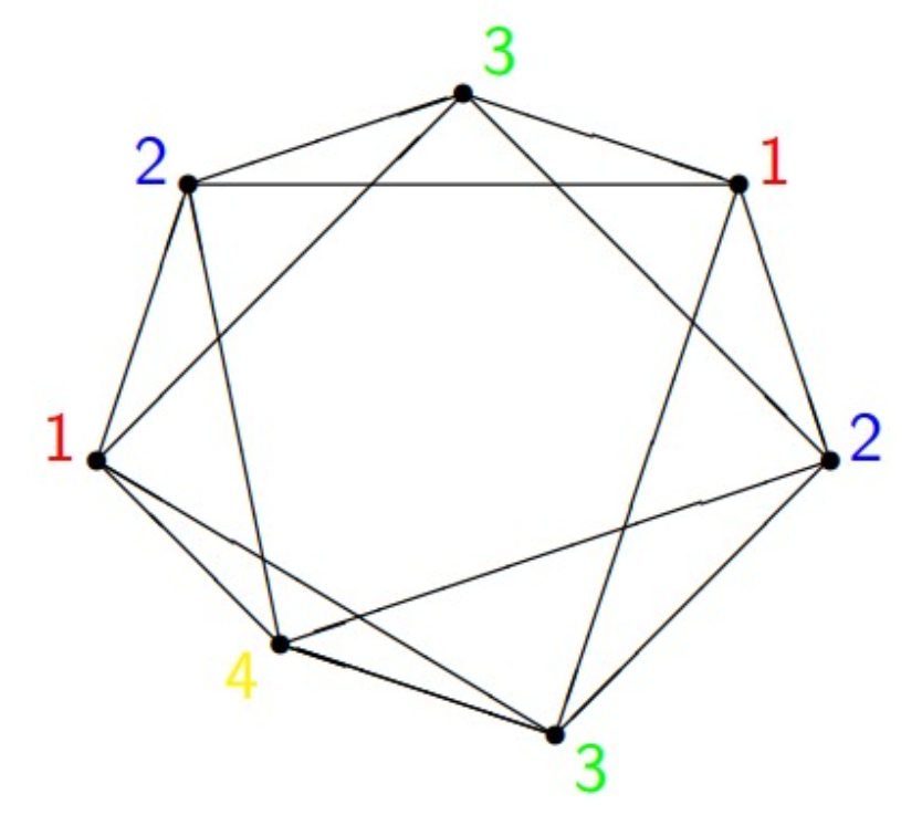 - Colour the outer vertices: 1, 2, 1, 2, 1, 2, 3 (the 7th vertex must differ from both the 6th and the 1st)