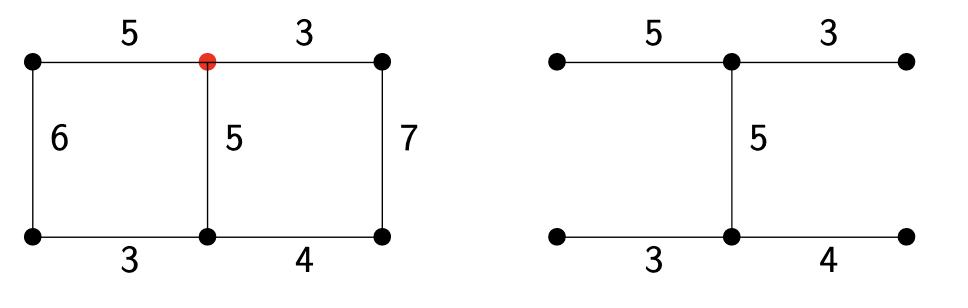 - We need to remove: \(e_G - e_T = 5 - 3 = 2\) edges.