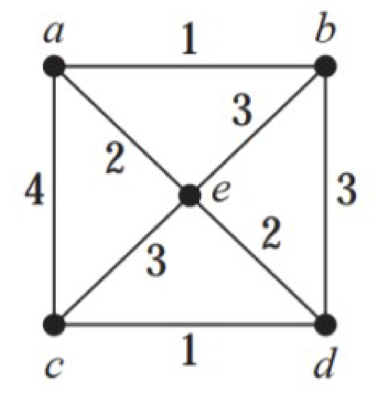 For the given graph, find a spanning tree with minimum total weight using Prim’s algorithm.