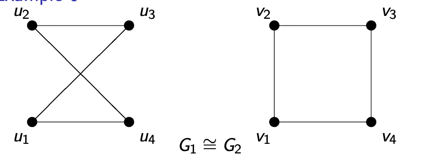 - Find a bijection: Notice \(G_1\) is a “crossed square” and \(G_2\) is a standard square (\(C_4\)). We can “uncross” \(G_1\). Try the mapping: \(\phi: u_1 \to v_1, u_2 \to v_3, u_3 \to v_2, u_4 \to v_4\).